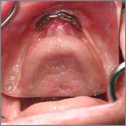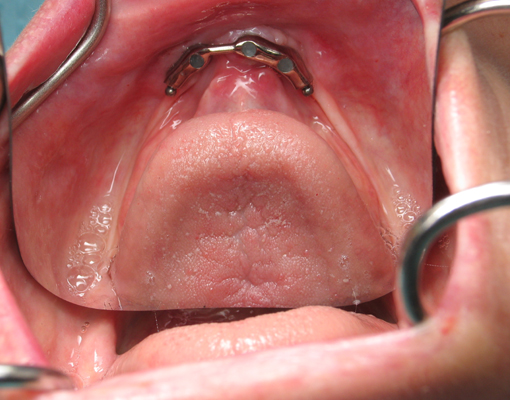 An overdenture in a patient's mouth