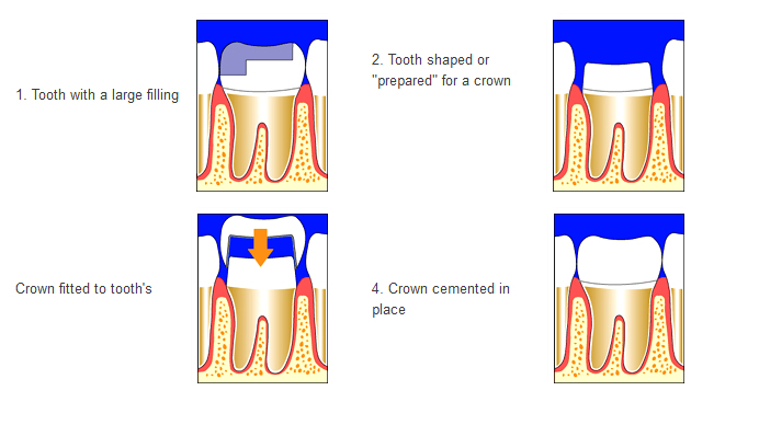 Gold crowns are often the preferred choice when the patient is not overly concerned about their appearance. Gold is extremely pliable making gold crowns a better fit than any other type. The strength and durability of the gold offers a more solid crown that will not chip or crack, which is possible with other types of crown. Gold crowns are normally used in molars, where the forces from chewing and grinding are most prevalent. Advantages of gold crowns :