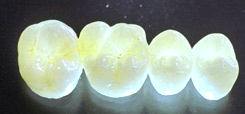 teeth and gums. Crowns in the bridge cover most of the portion of the
