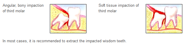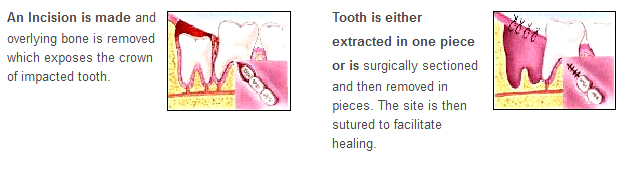 Wisdom teeth or third molars, are the last teeth to erupt in the oral cavity. There are four wisdom teeth, one in each quadrant. At times, wisdom teeth may not erupt properly and remain partially or completely impacted in the jawbone. This may lead to crowding or displacement of other teeth, localized tooth decay or gum infection. The impacted wisdom molars in the jawbone may be in unusual positions, sometimes horizontally or at times vertically, which prevents their eruption in the oral cavity.