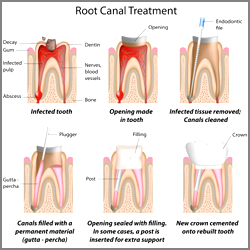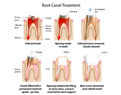 Root Canal Treatment, technically known as Endodontic Treatment cleanses the roots of the teeth containing the infected pulp and repairs the damage by filling the canal with the suitable material. Steps followed in Root Canal Treatment